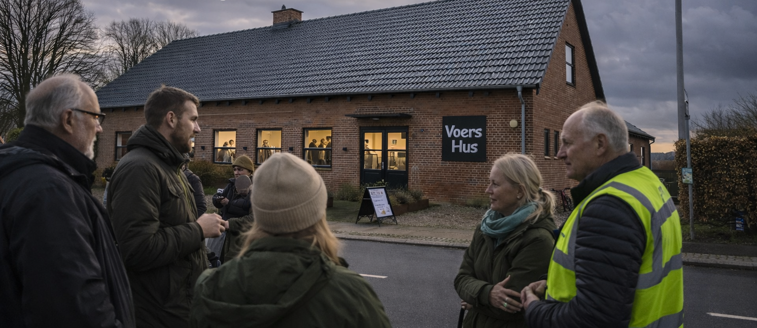 Vi har aftalt, at alle borgere i området har mulighed for at mødes kl. 08.00 og kl. 17.00 i Voers Hus, hvis der skulle opstå en kritisk situation: fx længerevarende strømnedbrud.